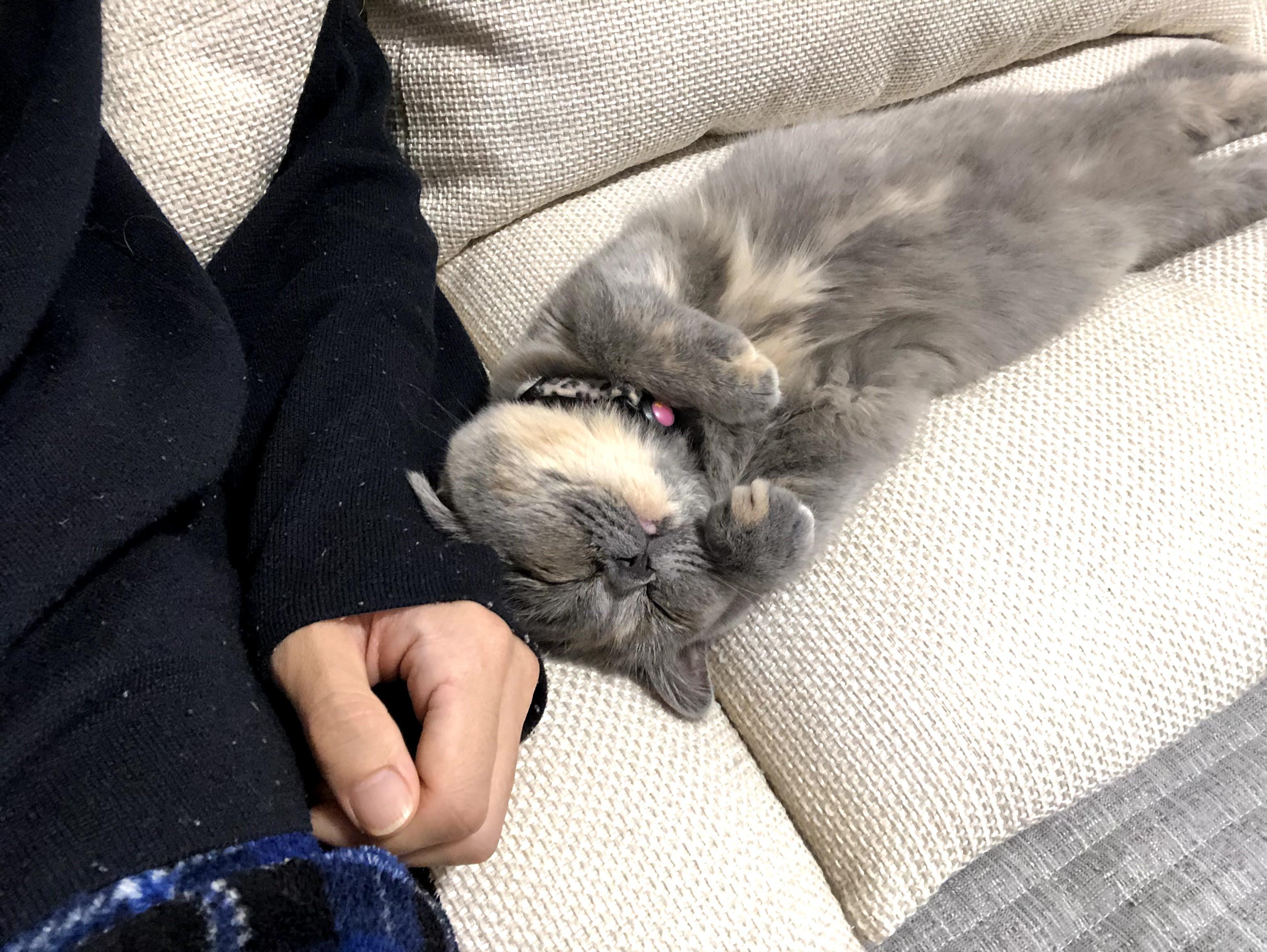 참치를 먹고 기분이 좋아졌는지, 공주가 옆에와서 배를 보이고 눕는다.