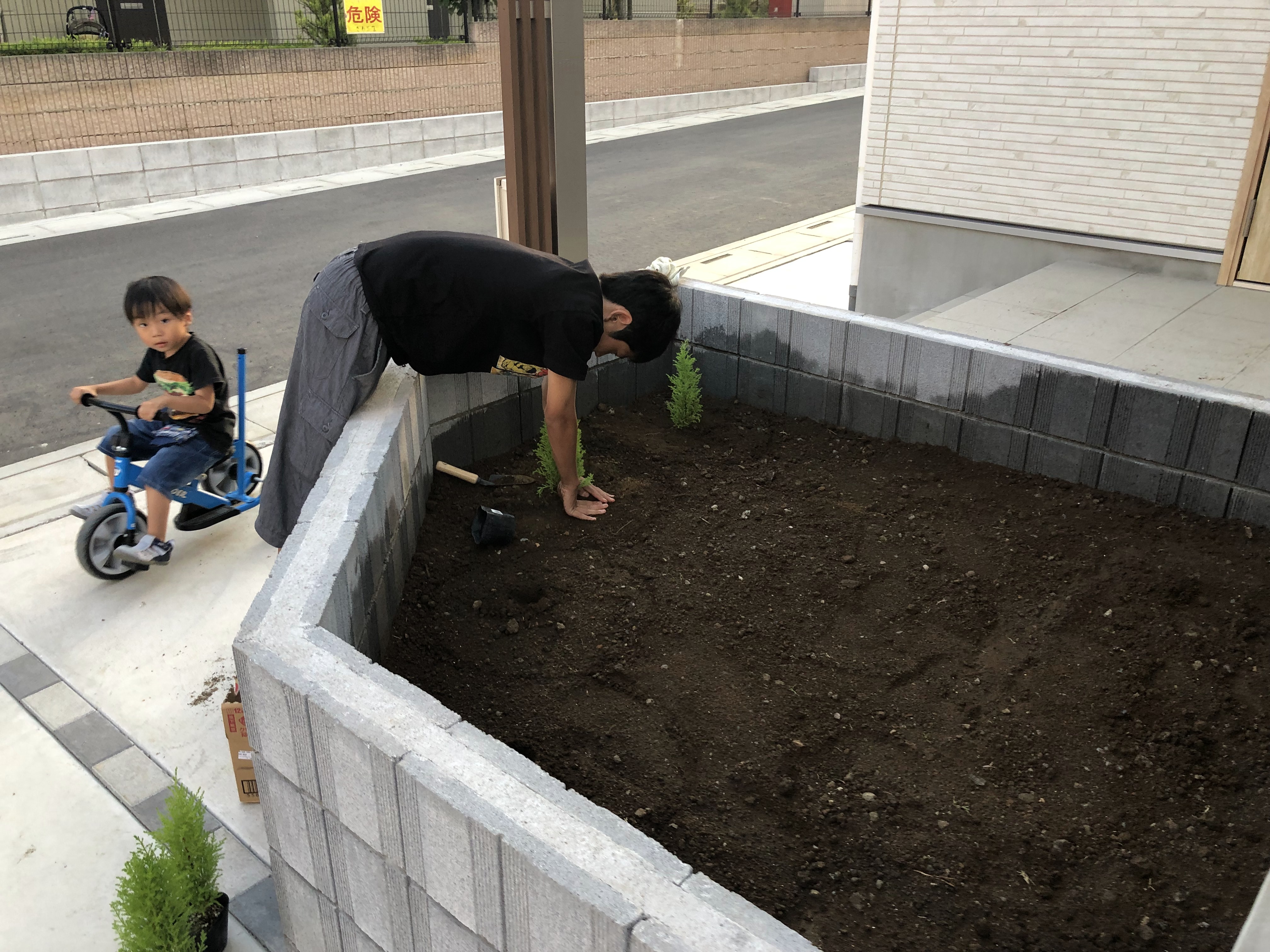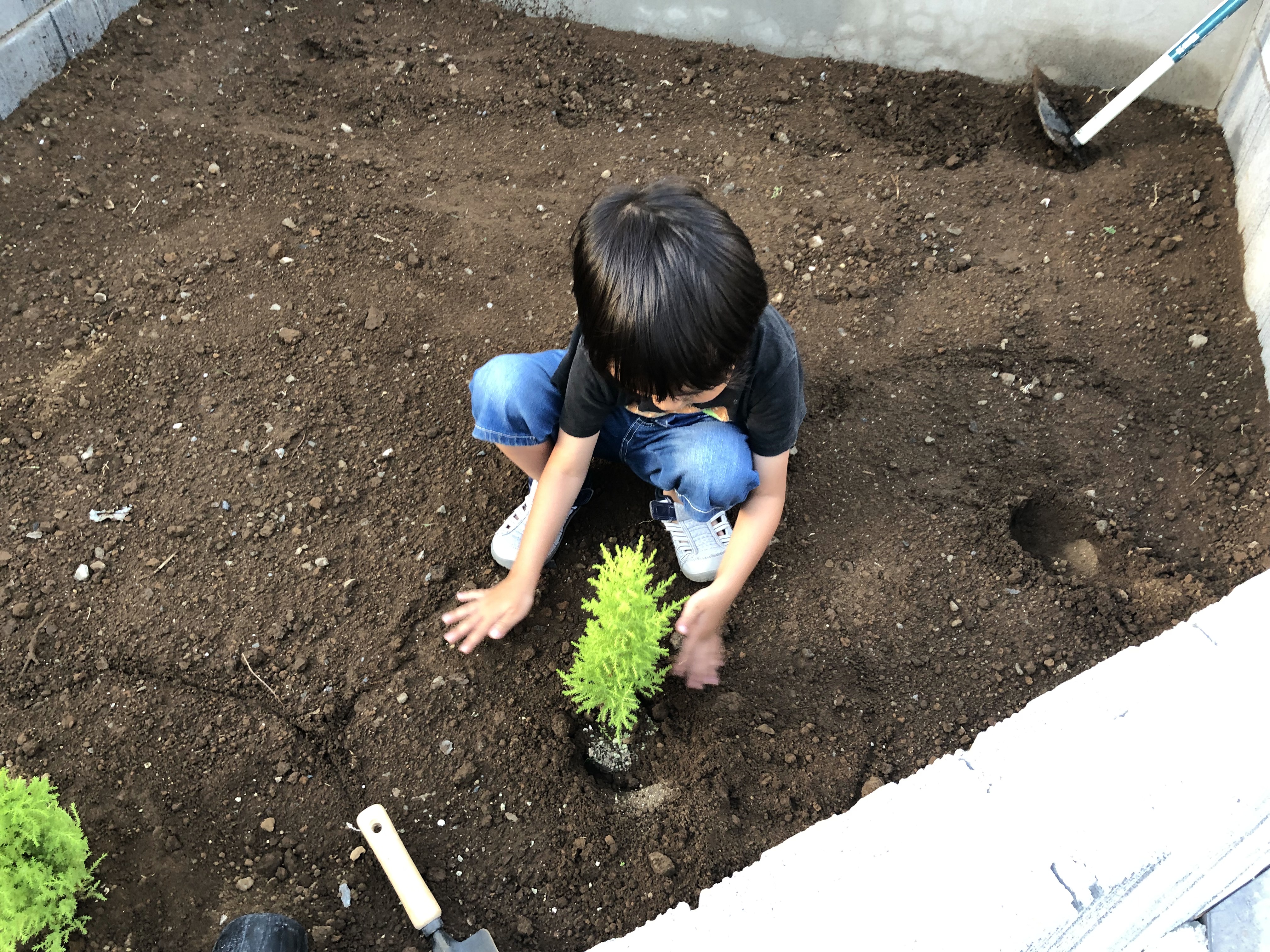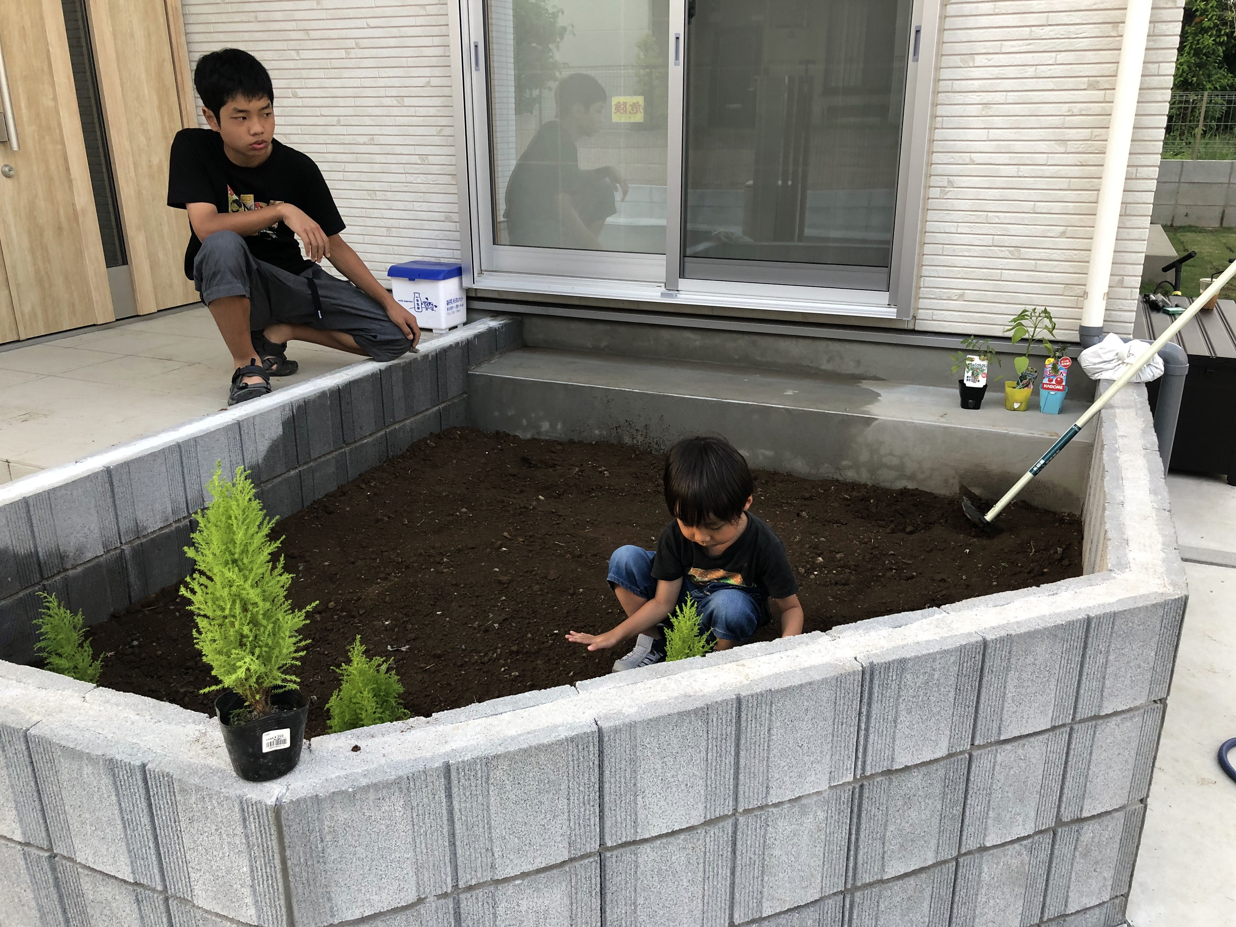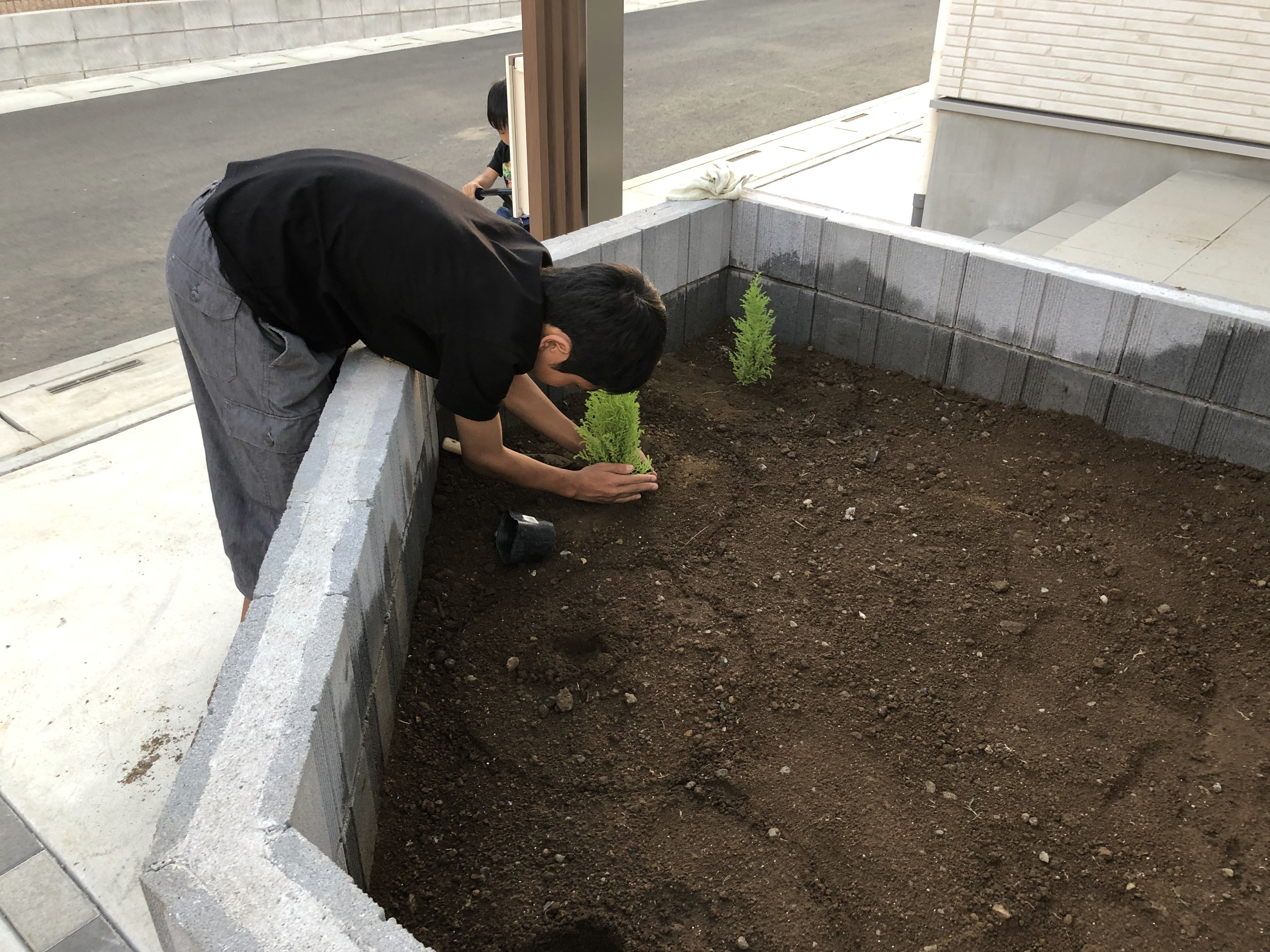 맨 위의 나무는 카즈미나무를 제가 먼저 심어놨고, 코타나무를 코타가 심고 있습니다.
