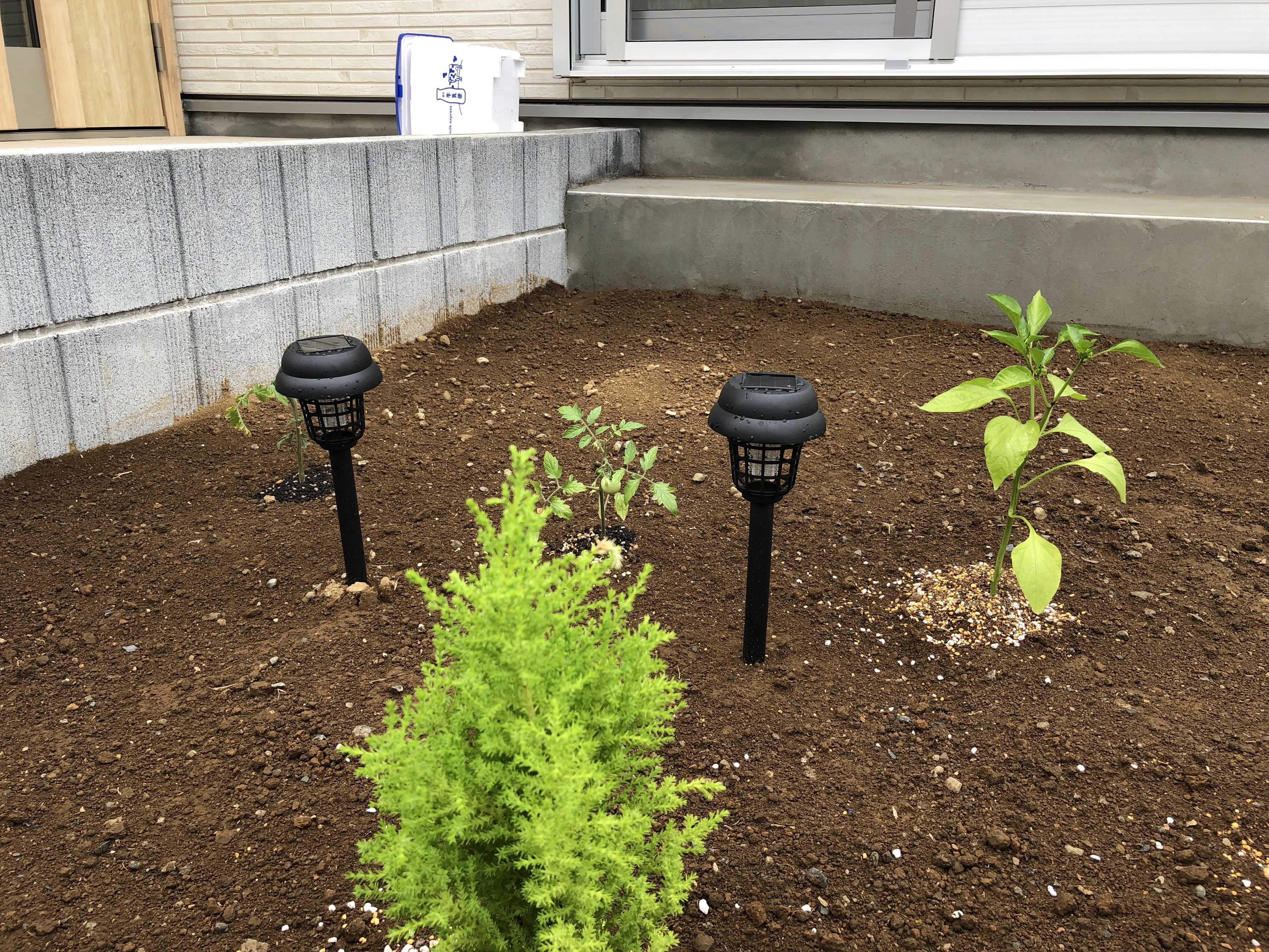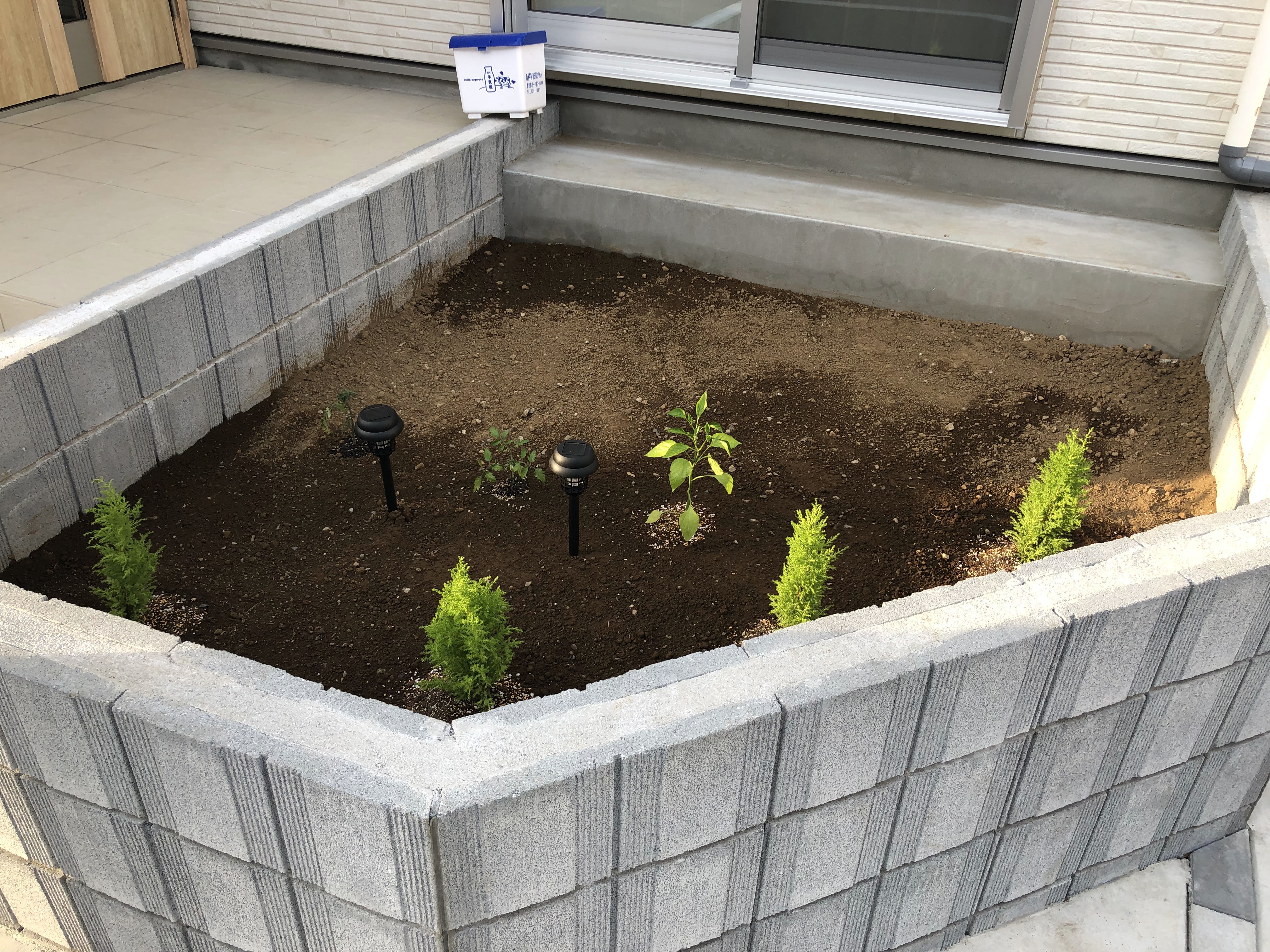 안돼겠다 싶어서 우선 화단 물받이에 영양토를 깔고 그 위에 뿌려주기로 했습니다.