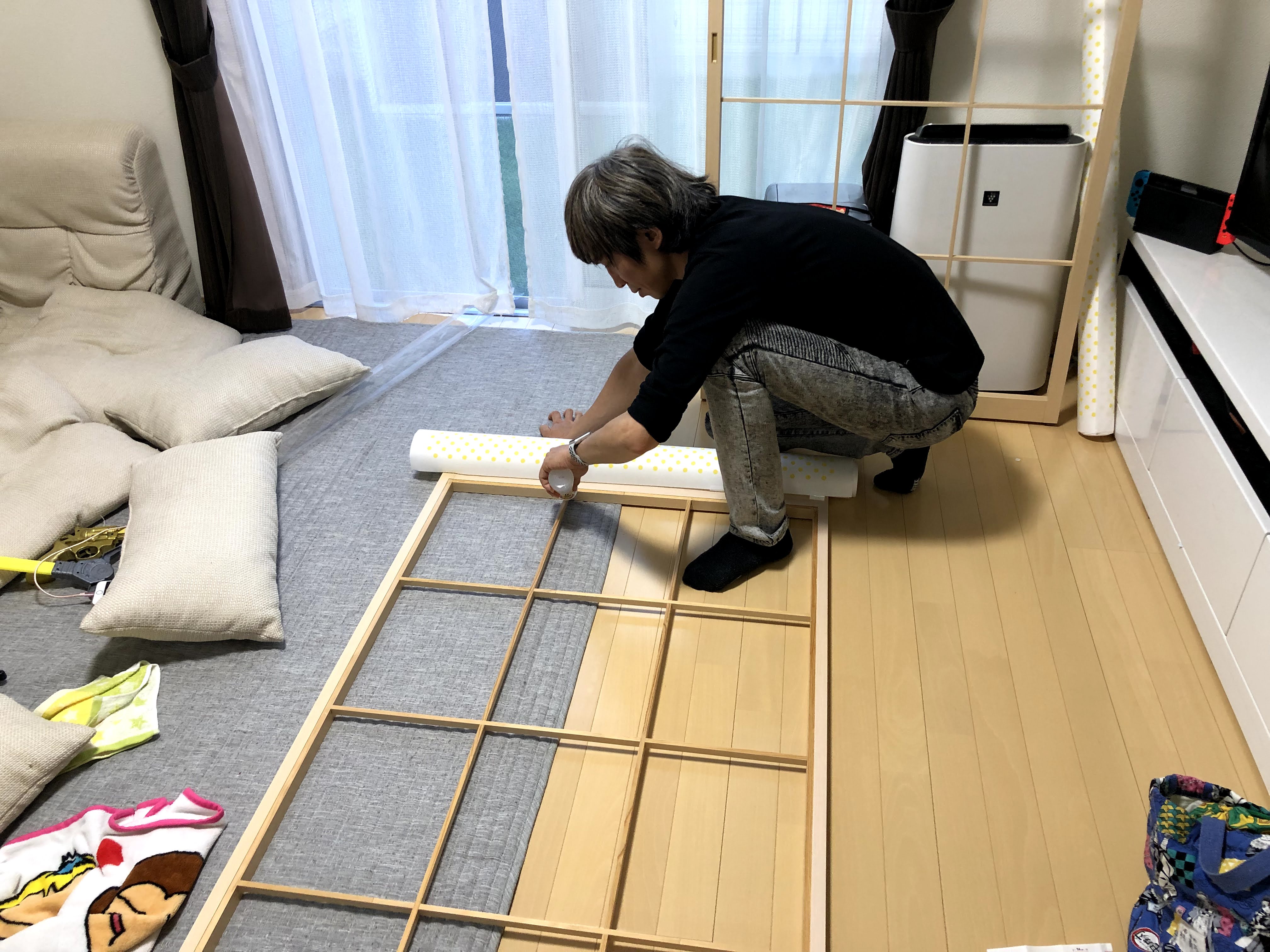 흔하게 볼 수 없는 일본의 창호지 작업이였습니다. ㅋㅋㅋ