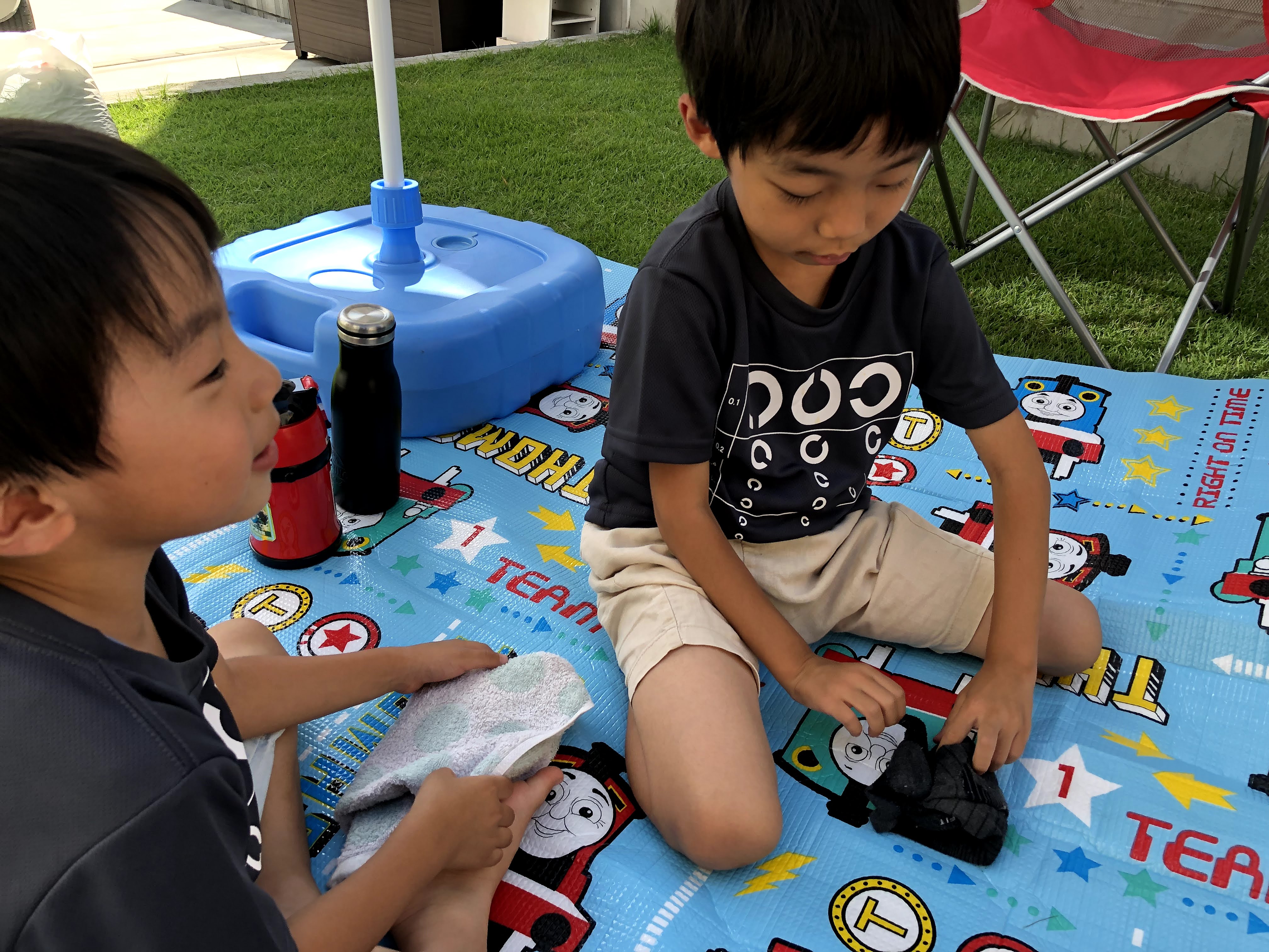 애들은 더우니 -_- 파라솔도 펴고, 텐트도 펴고 -_-//