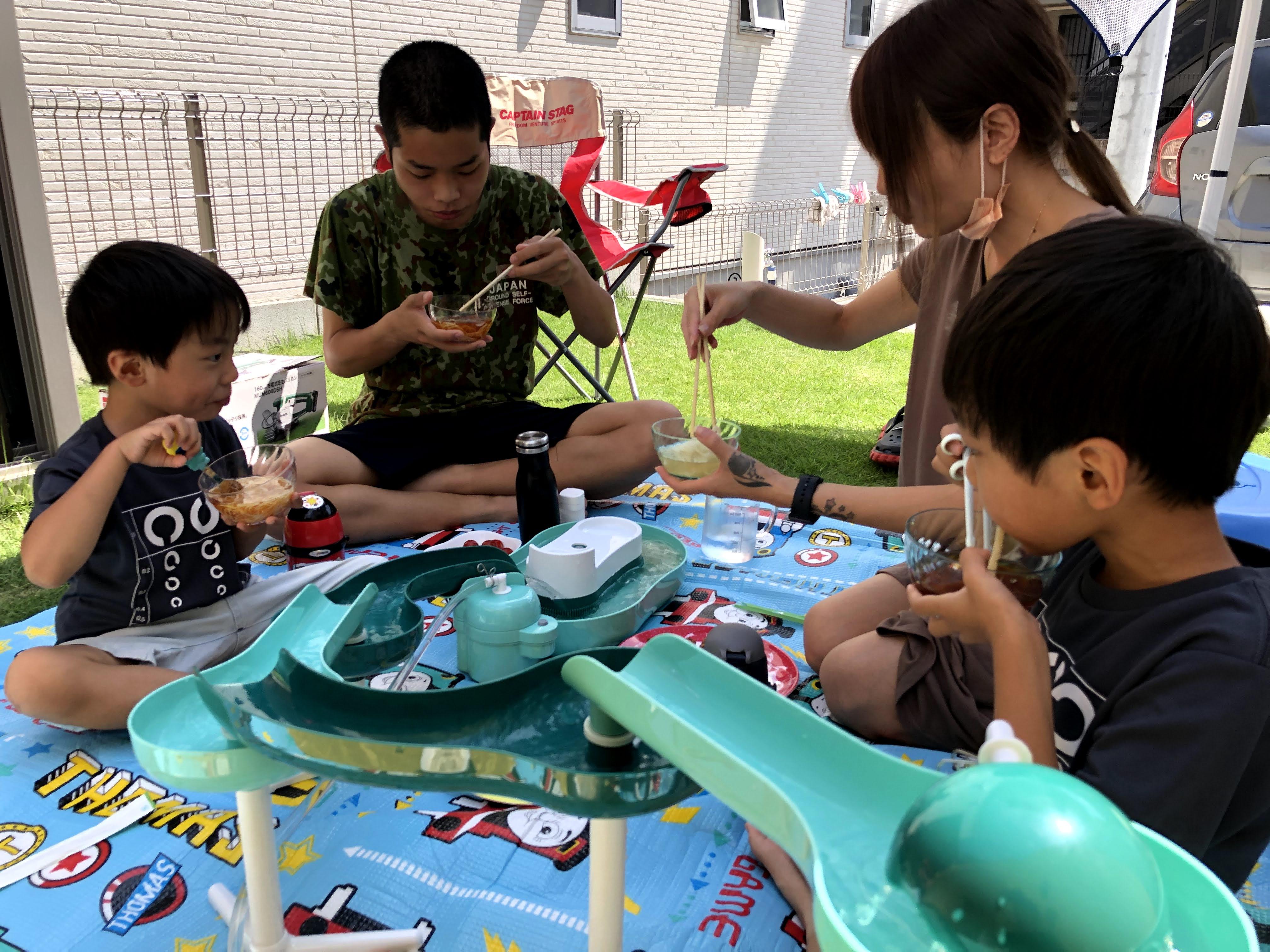아이들(코타,유노,레이)은 물길에서 소면을 잡아먹고, 이곳에 빠진 면을 카즈미가 먹고 ㅋㅋㅋㅋ