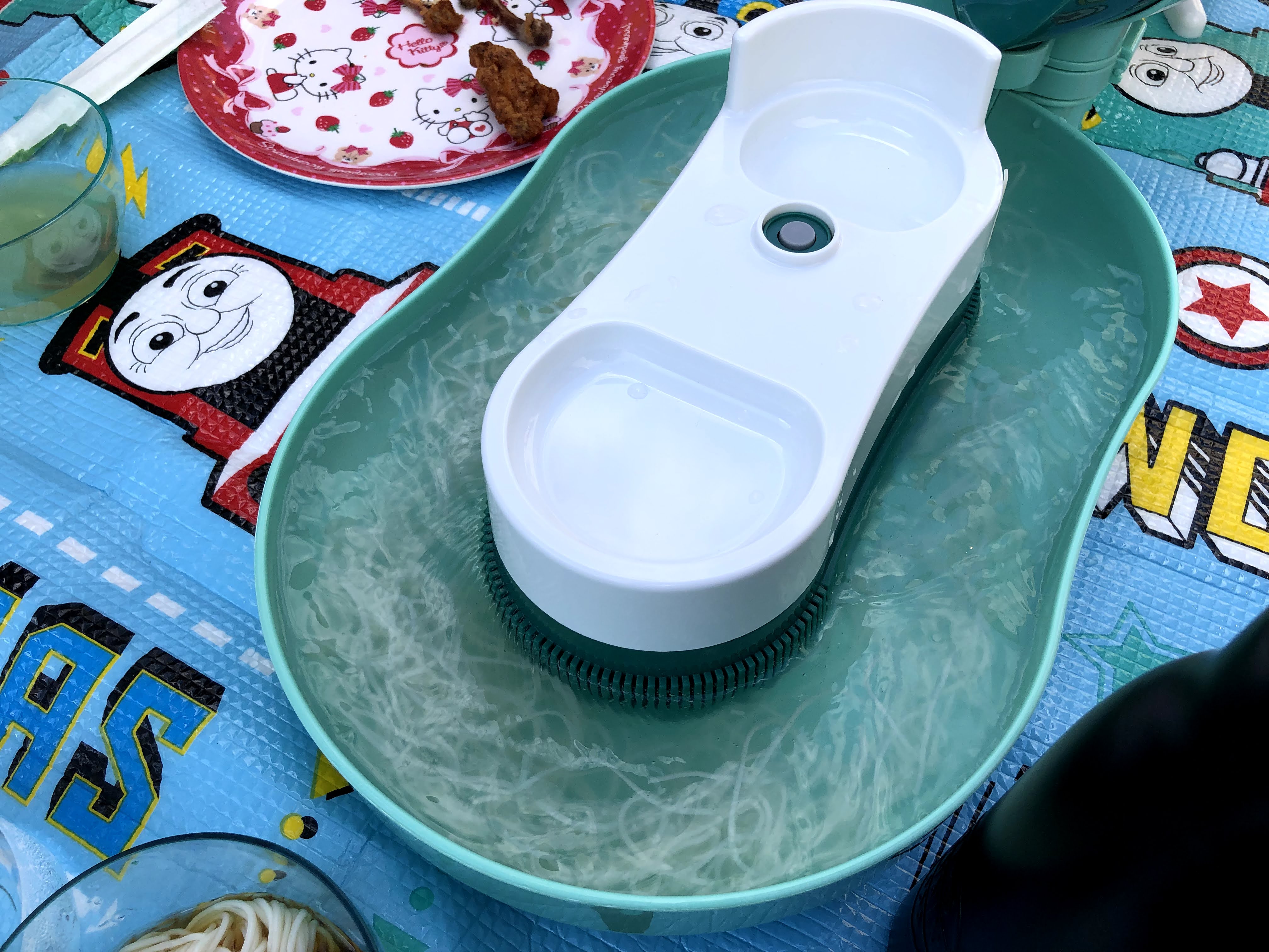 이 타원형 받이(얼음이 들어있는 곳)도 계속 시계방향으로 물과 소면이 뱅글뱅글 돌아갑니다.