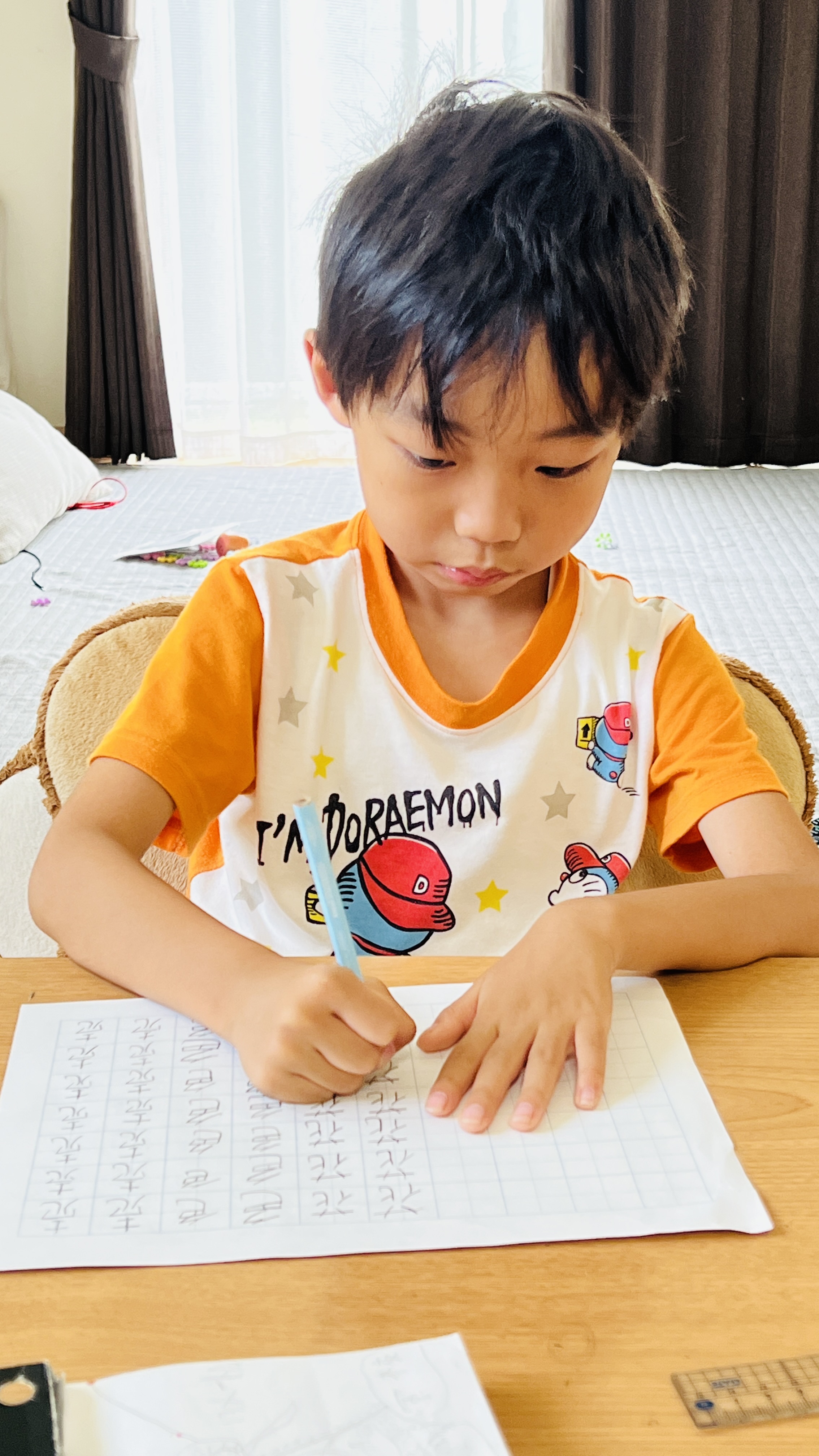 표정에 숙제하기 싫다는걸 모두 보여주면서 숙제하는 유노링입니다.