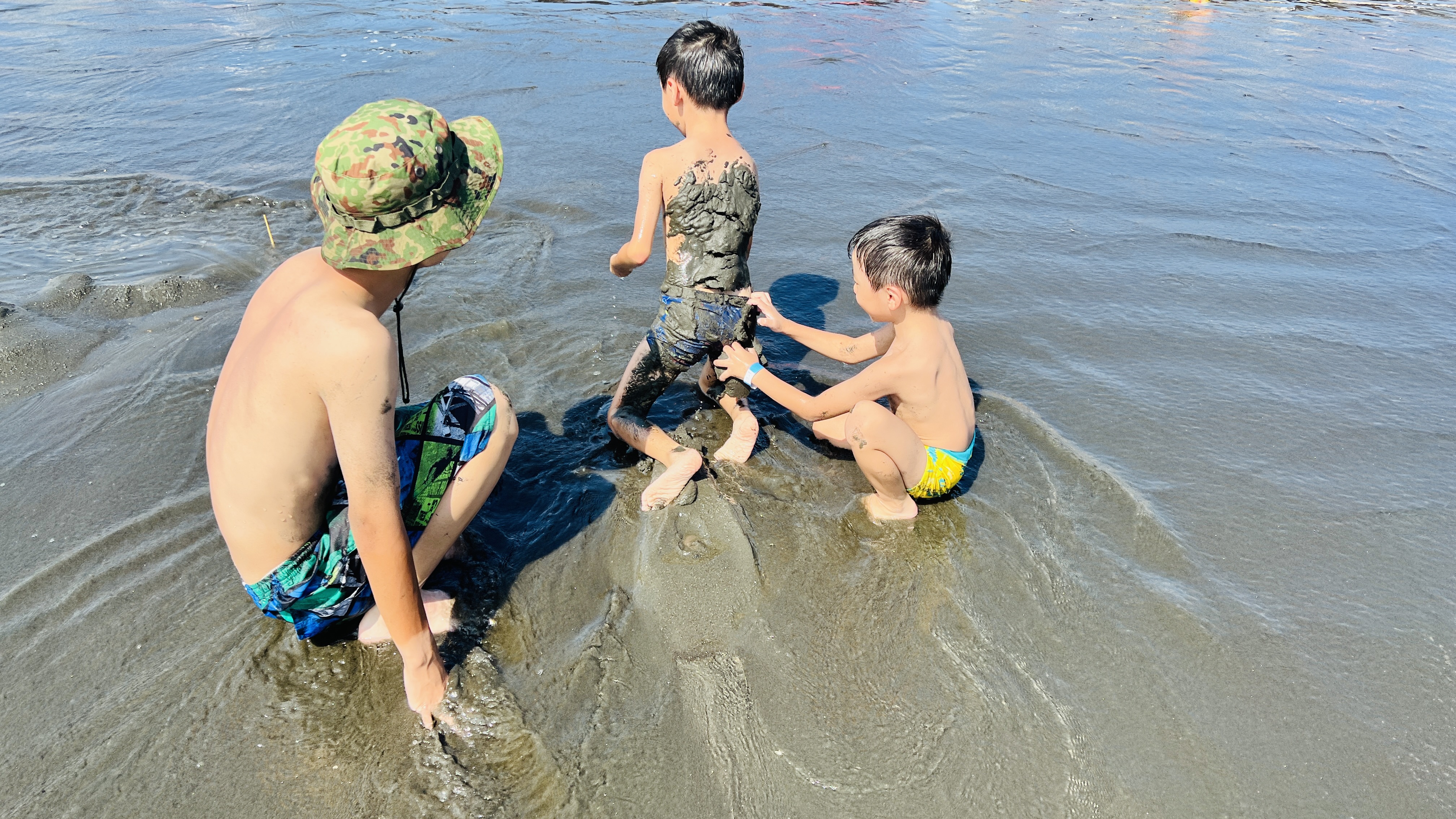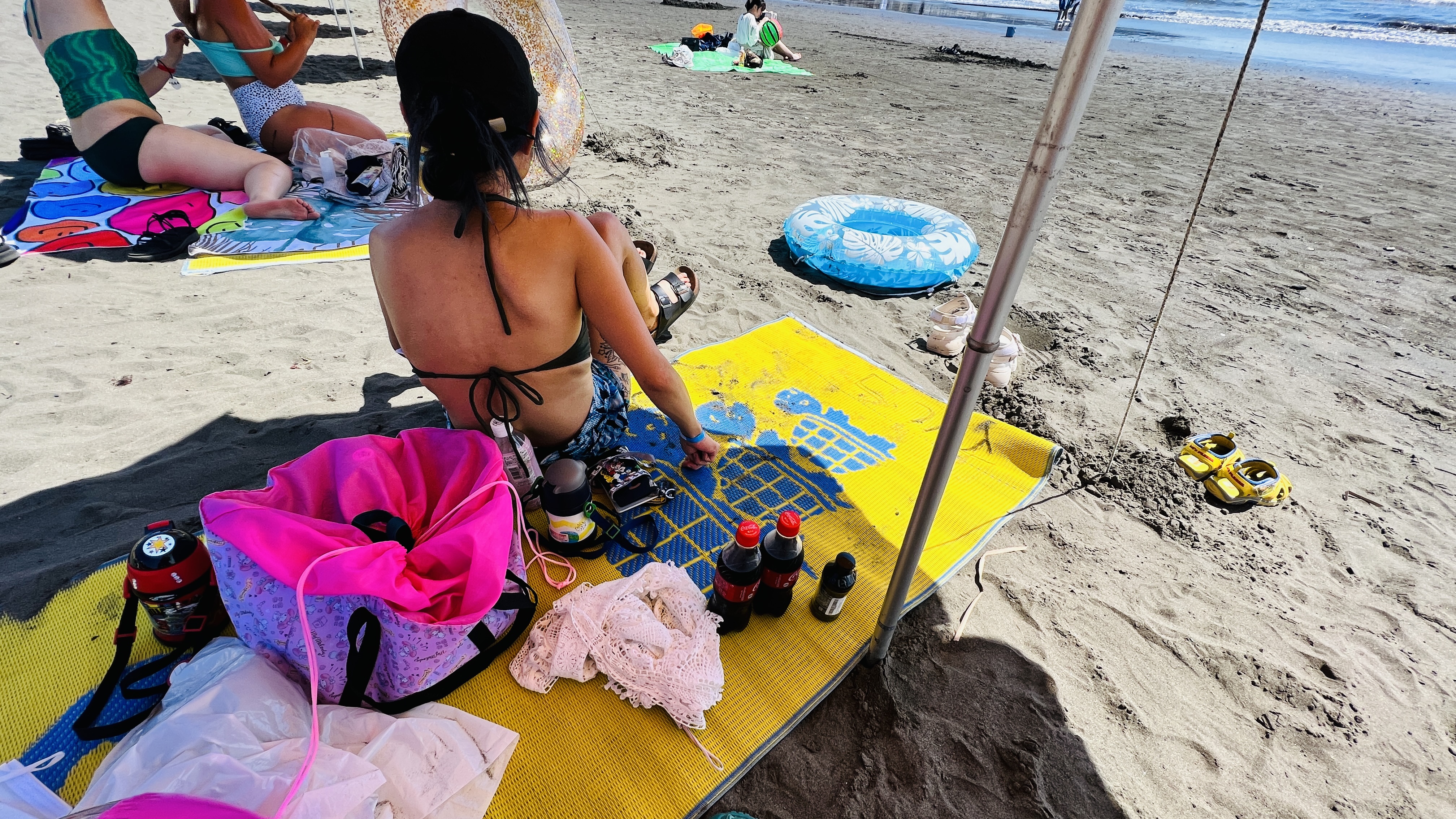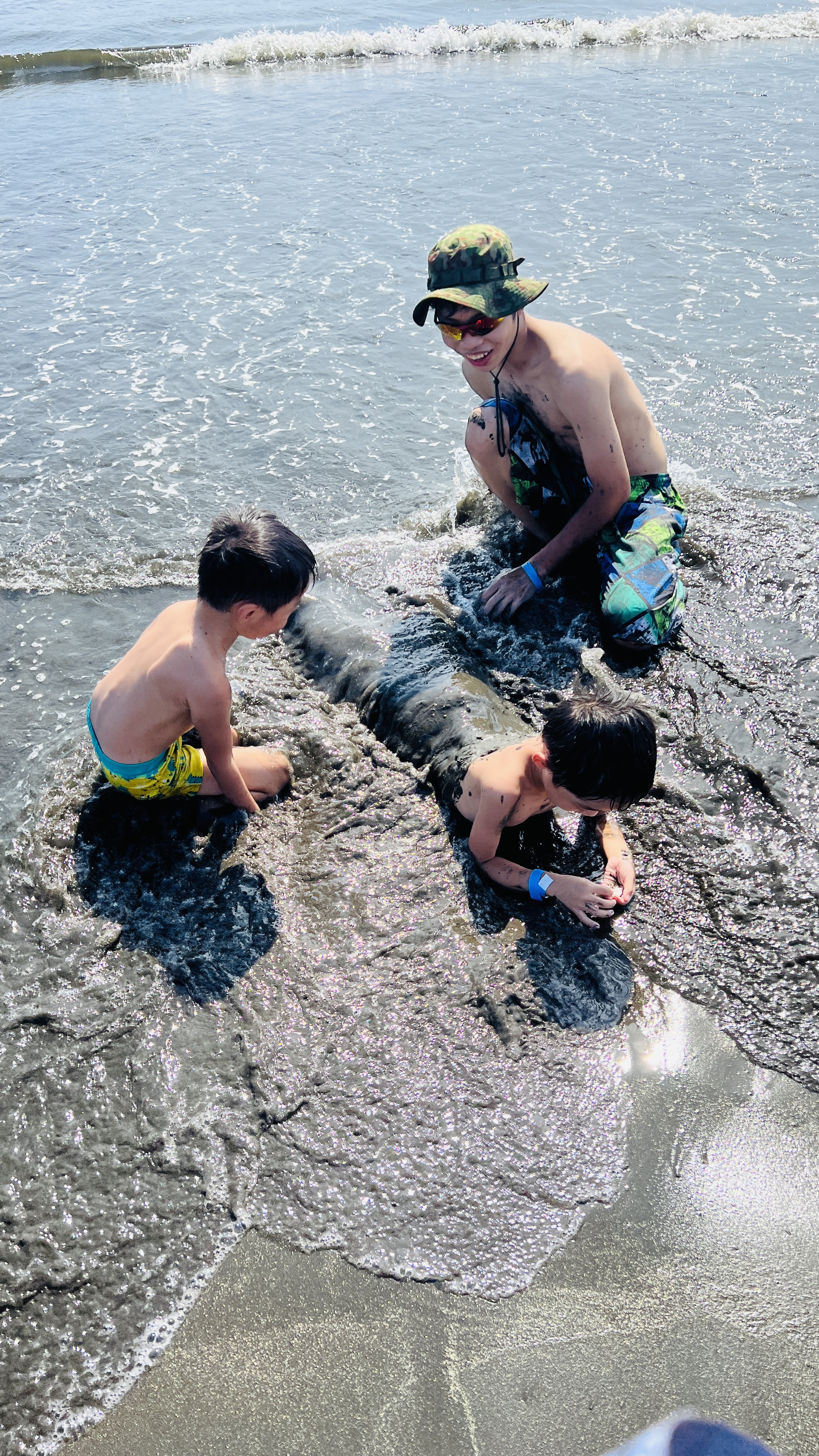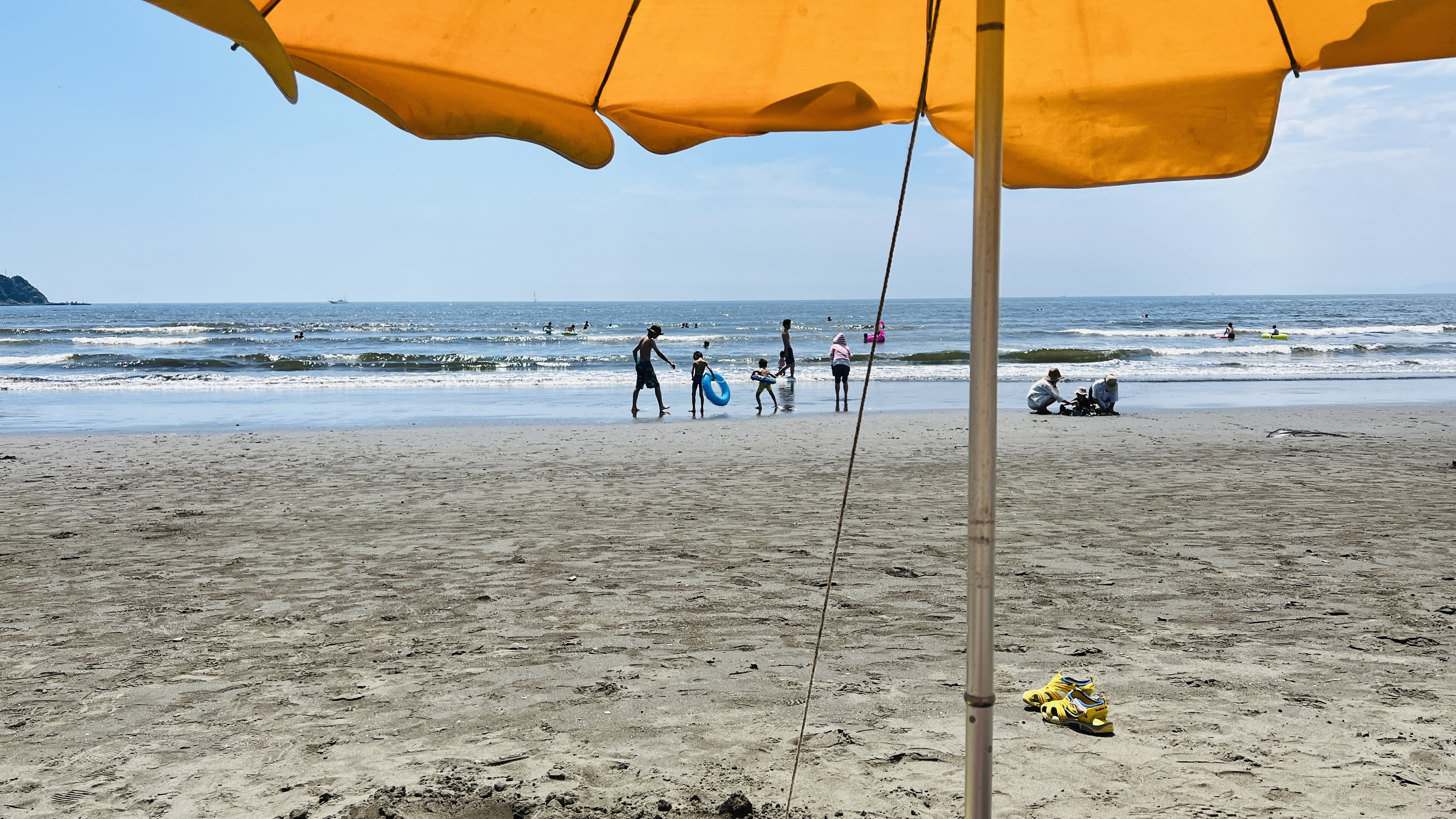 어린이들은 무료로 하고 성인 3명 6000엔내고, 수영복으로 갈아입고, 파라솔을 빌리고, 돛자리를 빌렸습니다. (모두 포함)