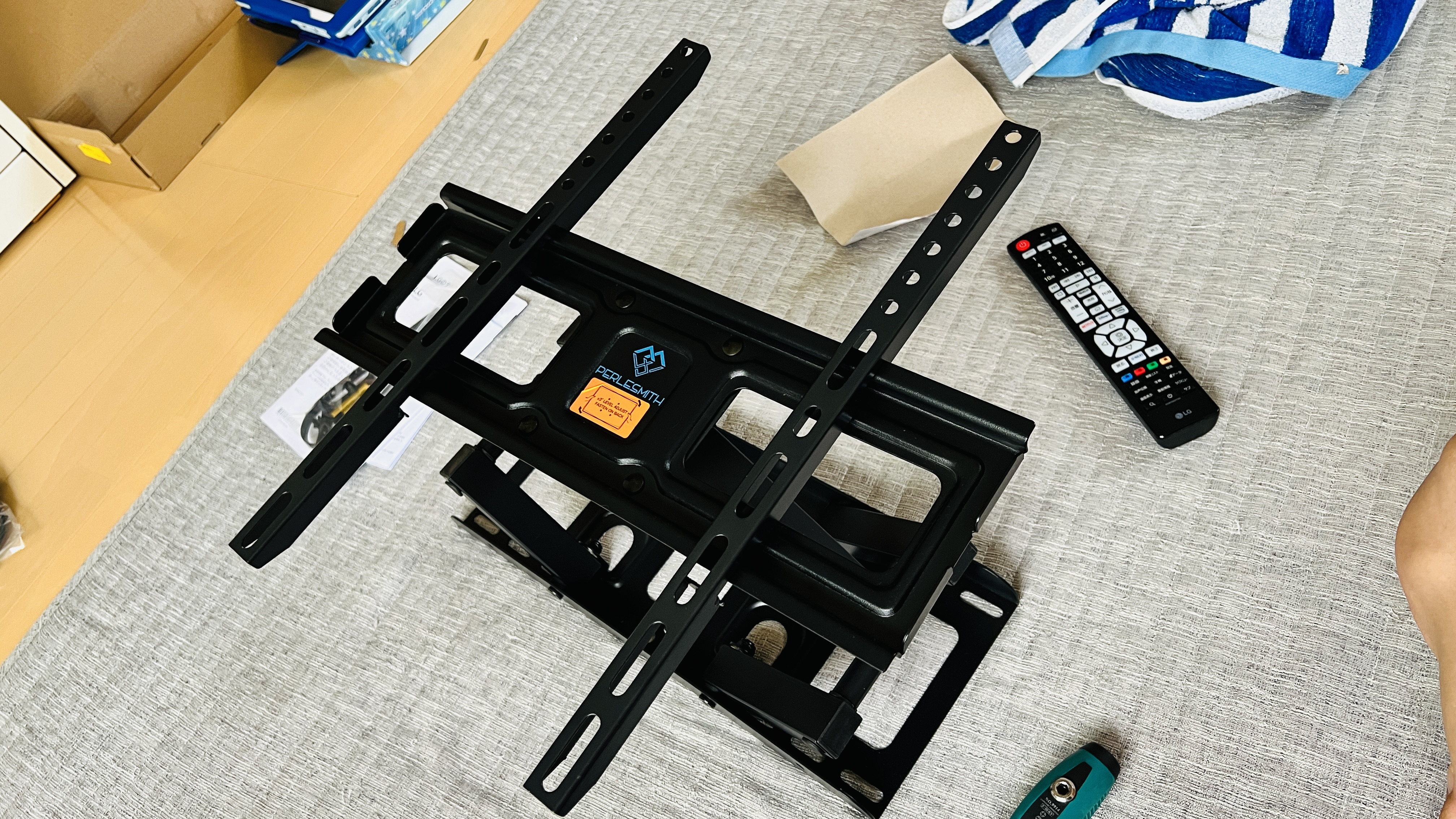 자!!! 벽걸이는 완성했으니, 아직 다리도 떼지 않은 TV를 한번 걸어봅니다.
