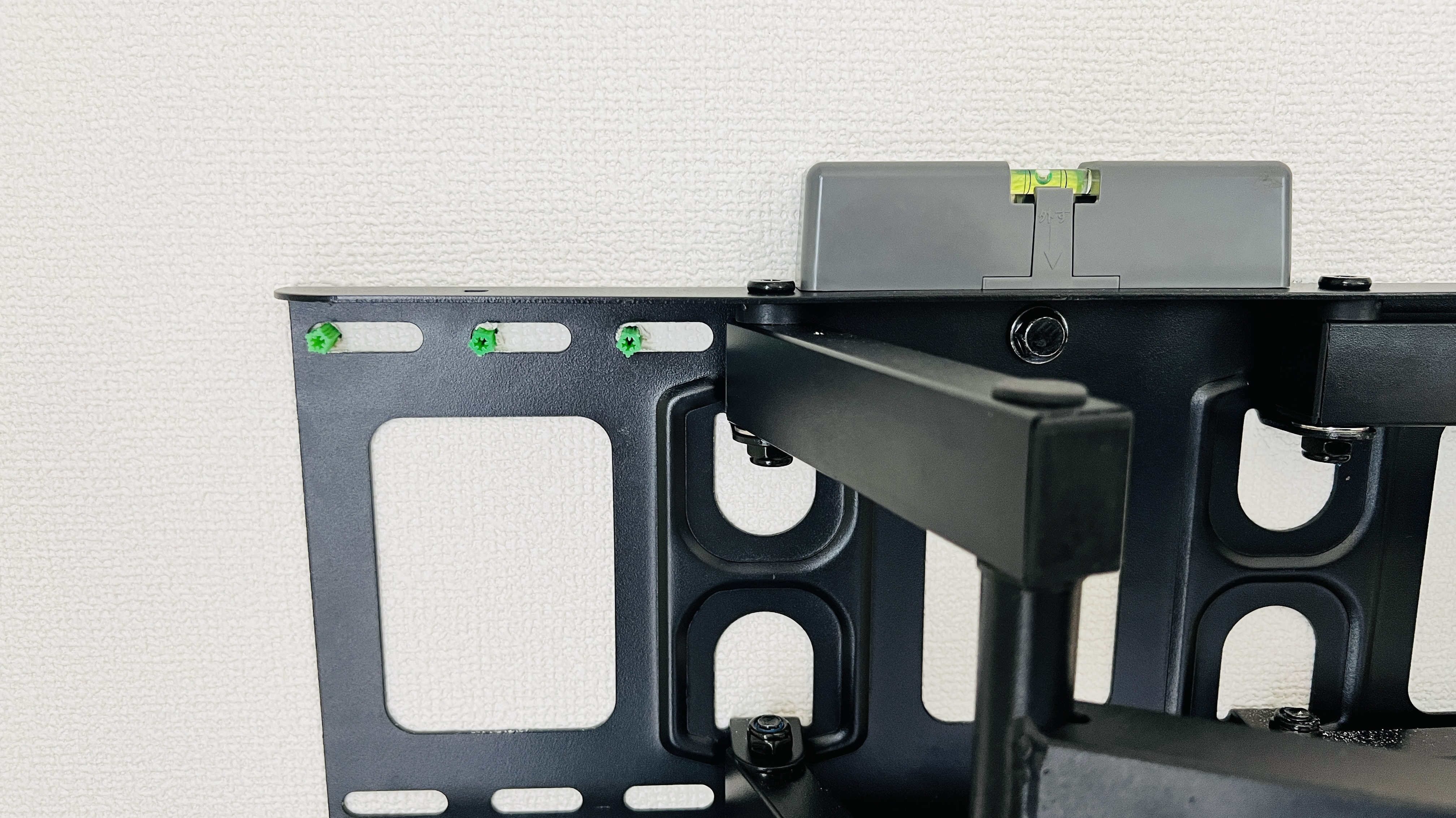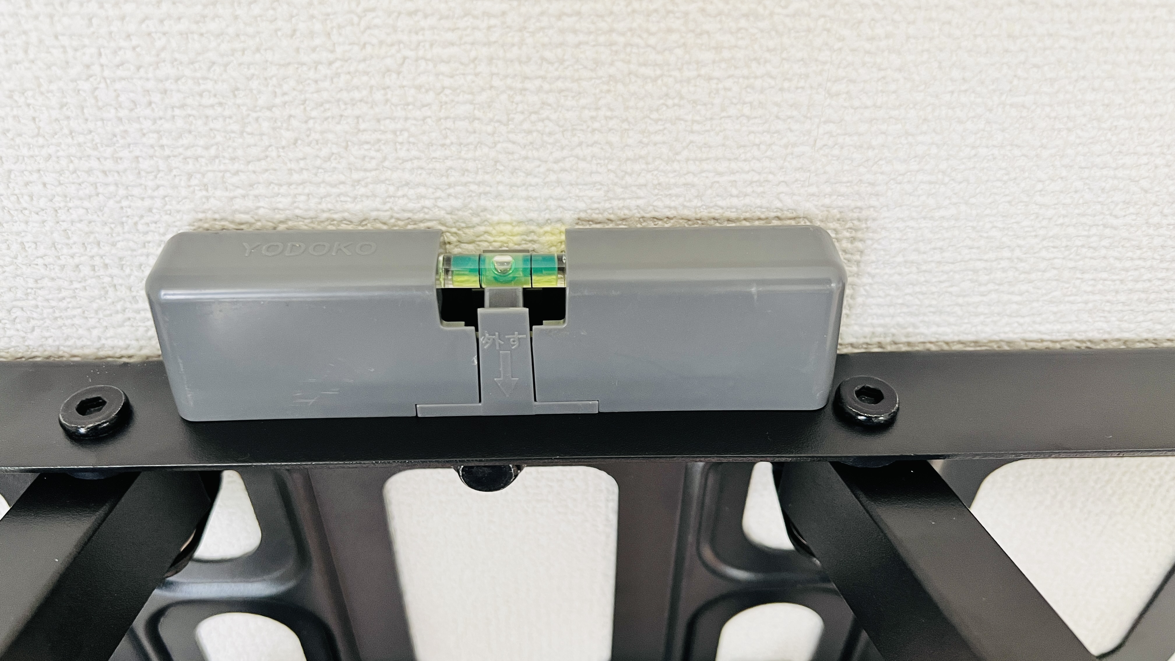 이제 아래쪽 스크류를 박아야 하는데, 수평을 맞추기 위해서 저렴한 수평계를 올려놔봅니다.